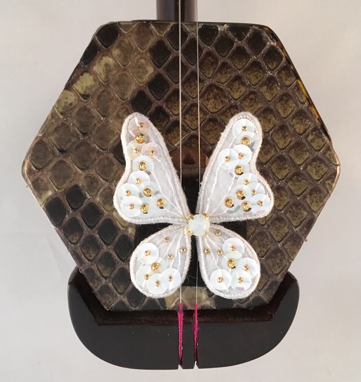 二胡の音色調整、雑音除去用、スパンコールとビーズを贅沢に使った、とても手の込んだ美しい胡蝶のコントロールマスコット(控制墊)です。