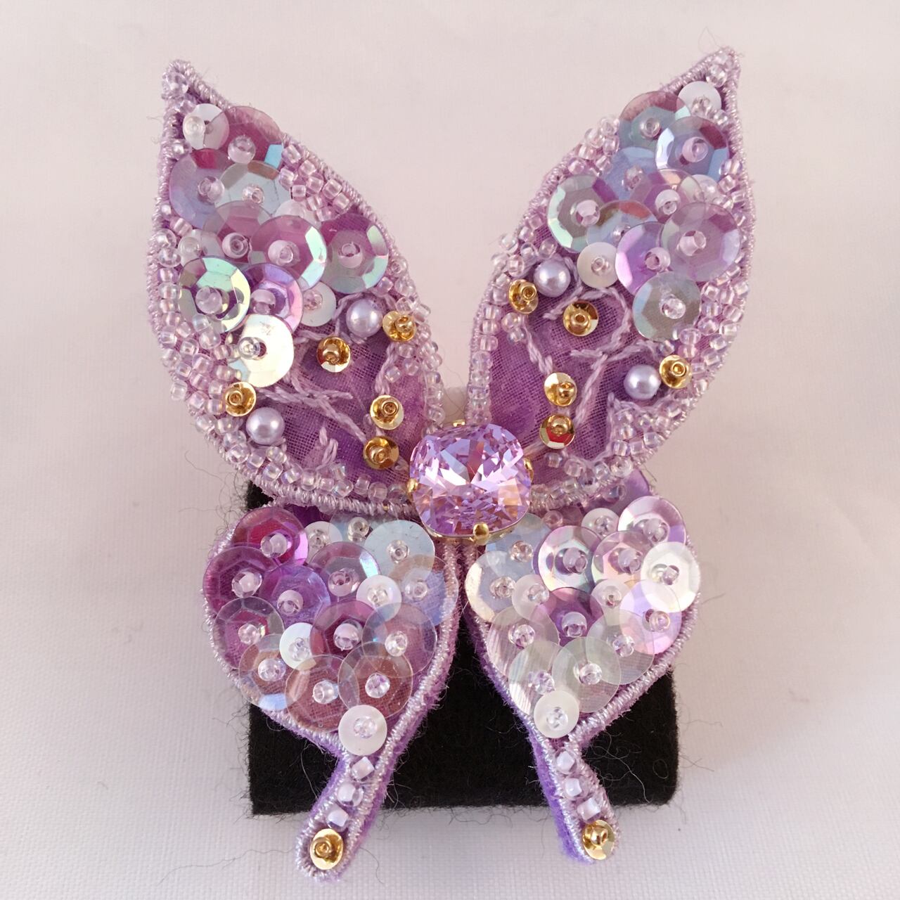 スパンコールとビーズ、中心にはスワロフスキーの大玉を贅沢に使った、とても手の込んだまるで宝石のような美しい胡蝶のコントロールマスコット(控制墊)です。