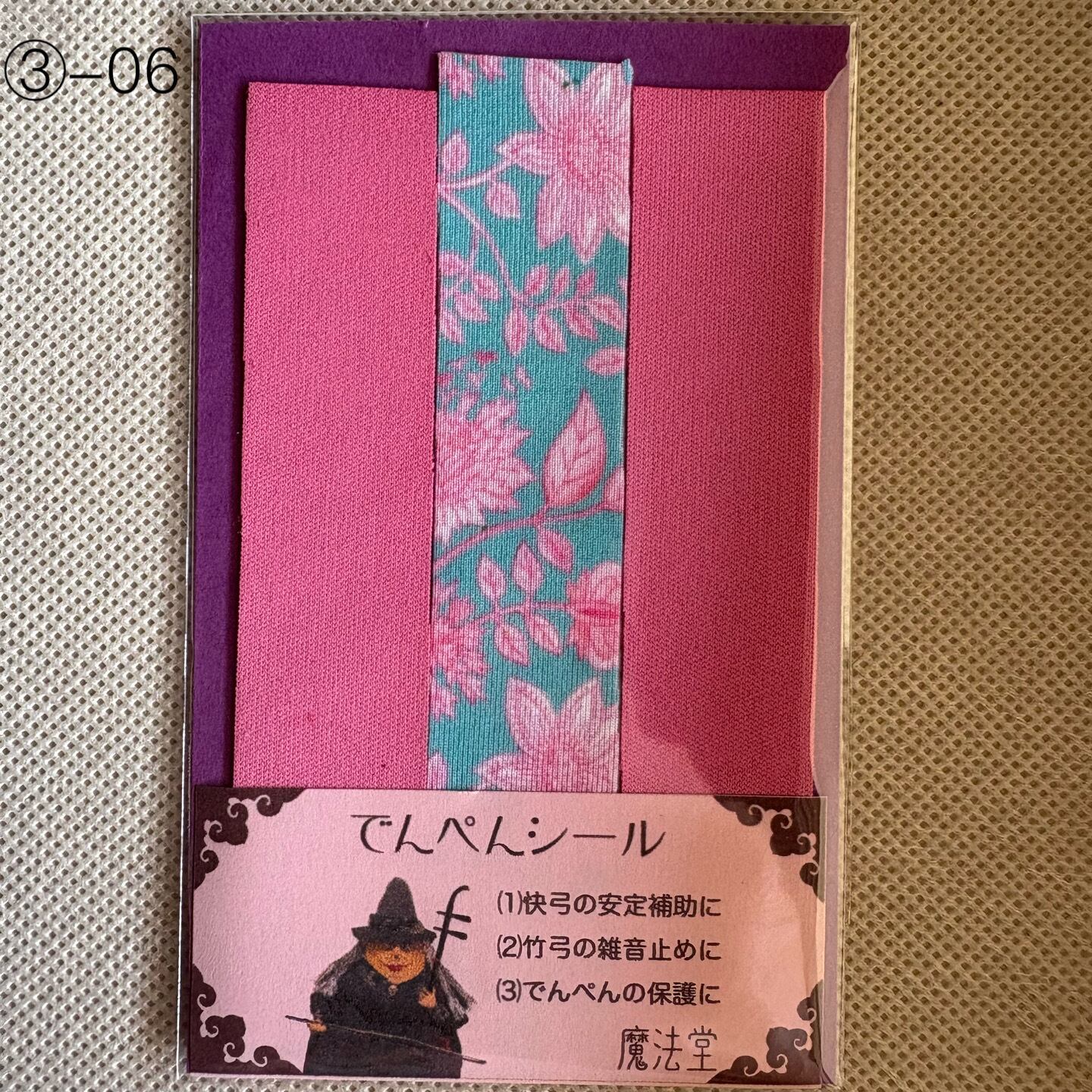 本来はデンペンのすり減りを防ぐためのシールですが、弓竹がデンペンに当たった際に出るカチカチとした雑音止めの効果に加え、慢弓・特に快弓の演奏が安定しやすくなります。