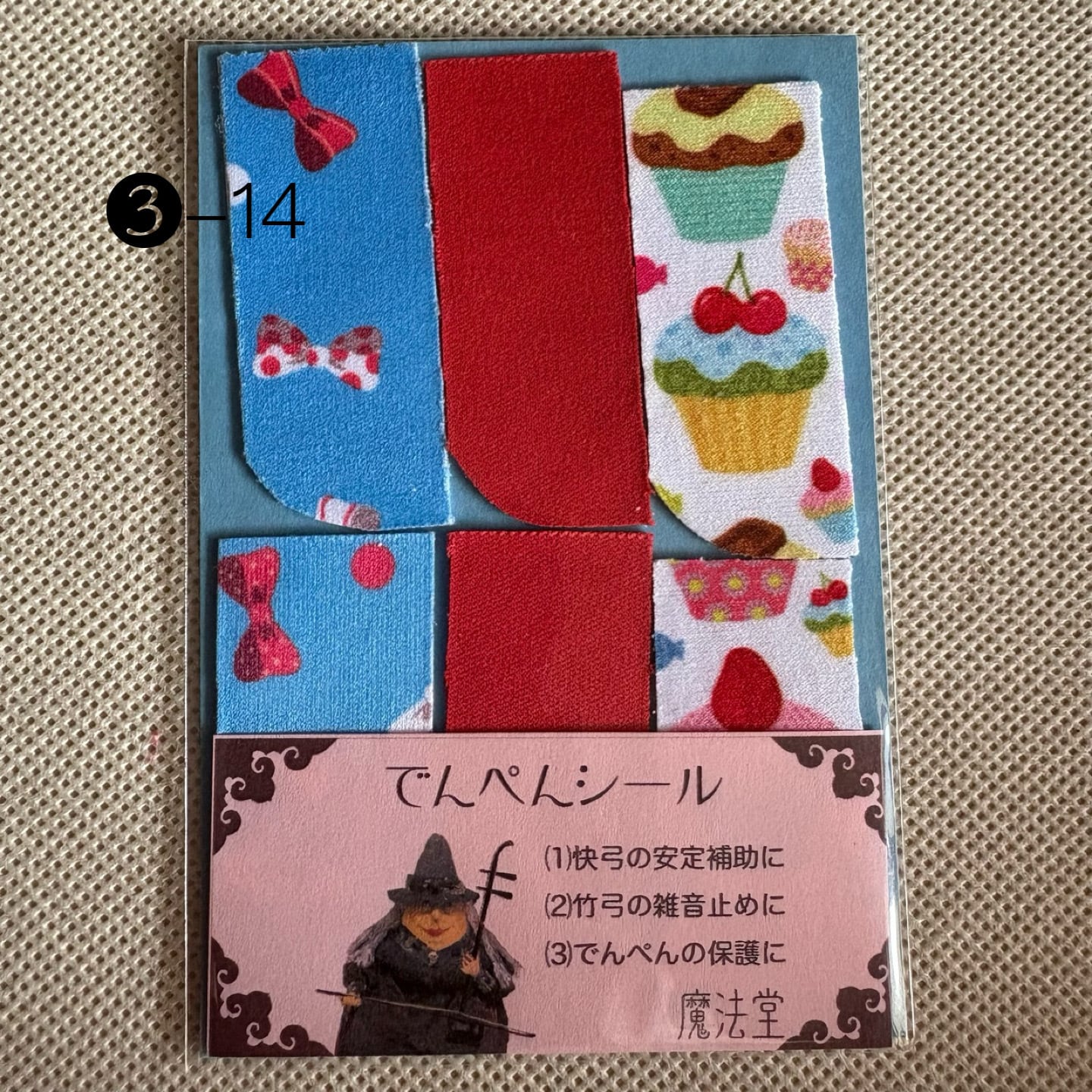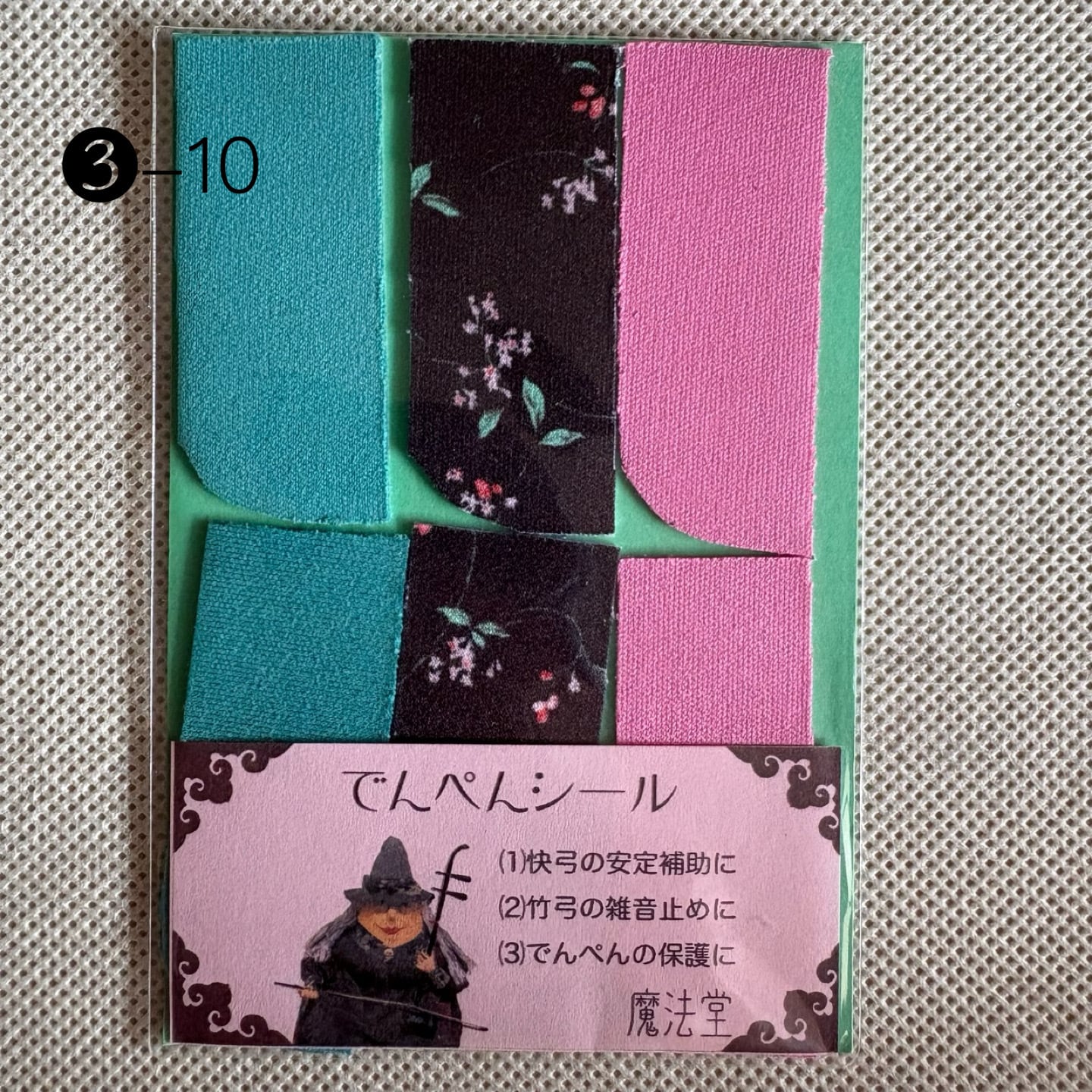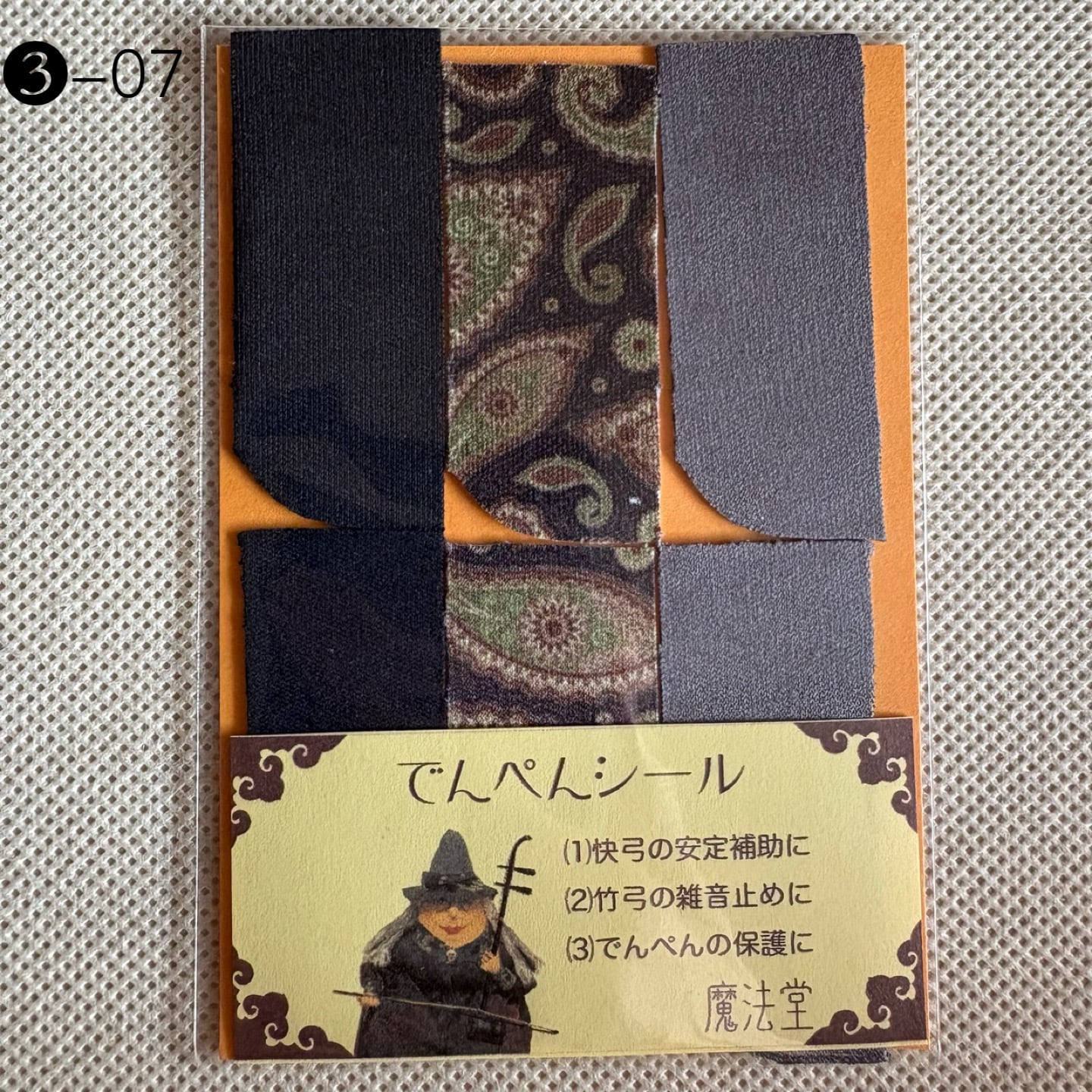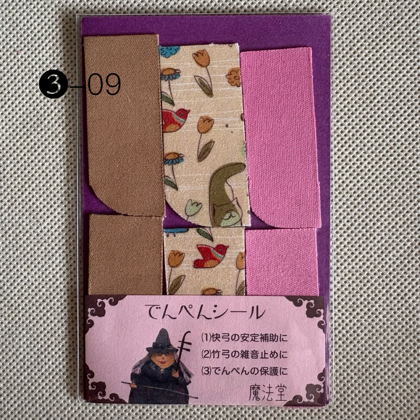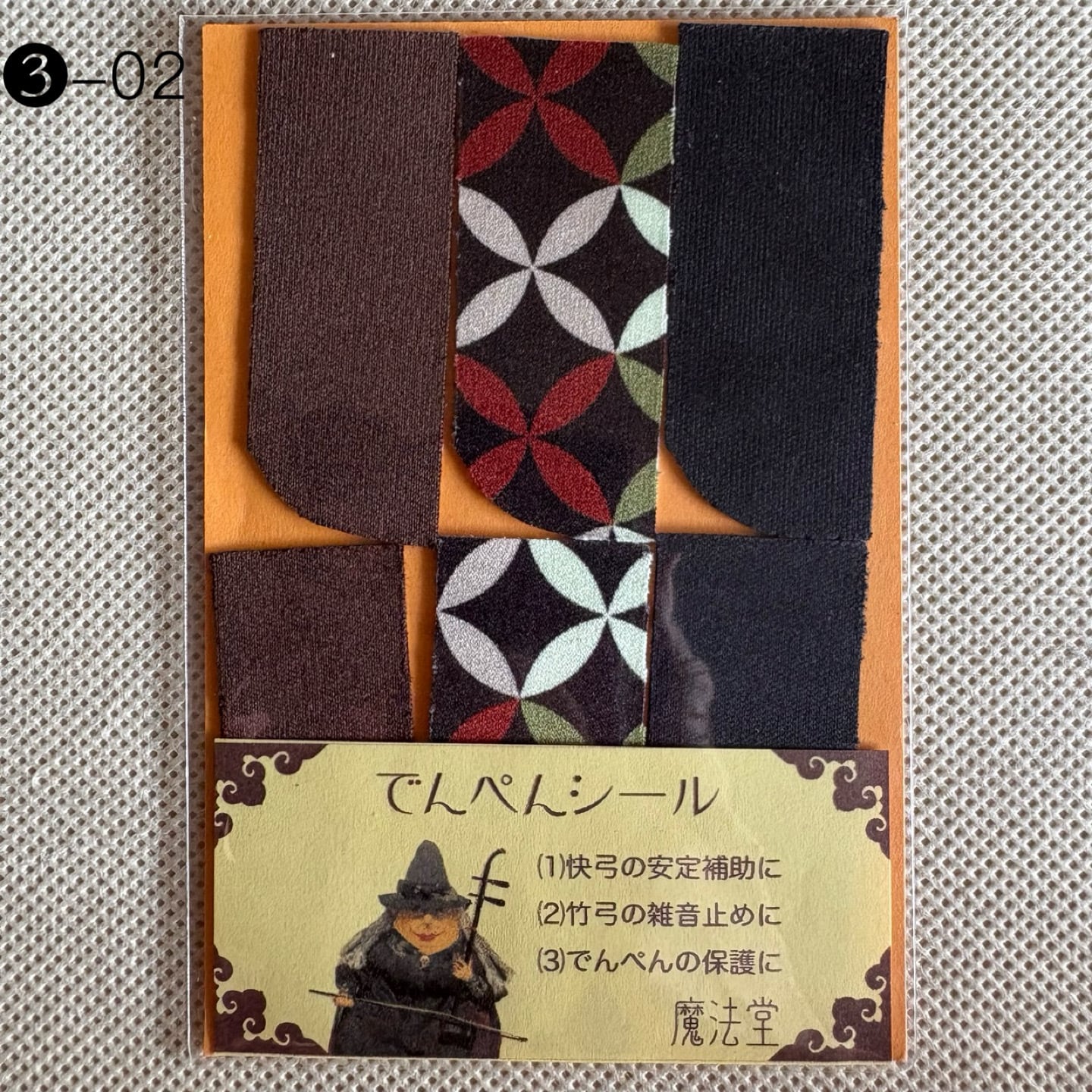 本来はデンペンのすり減りを防ぐためのシールですが、弓竹がデンペンに当たった際に出るカチカチとした雑音止めの効果に加え、慢弓・特に快弓の演奏が安定しやすくなります。