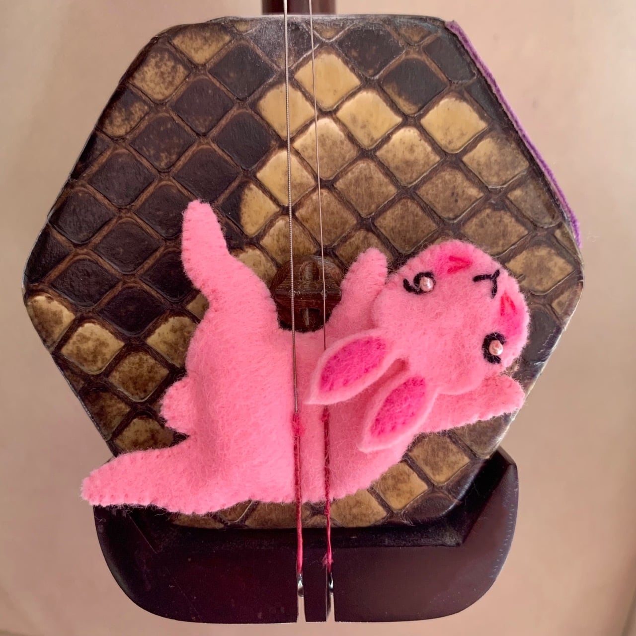 二胡の音色調整、雑音除去用、ピンクウサギのコントロールマスコット(控制塾)と、デンペンシール1枚のセットです。