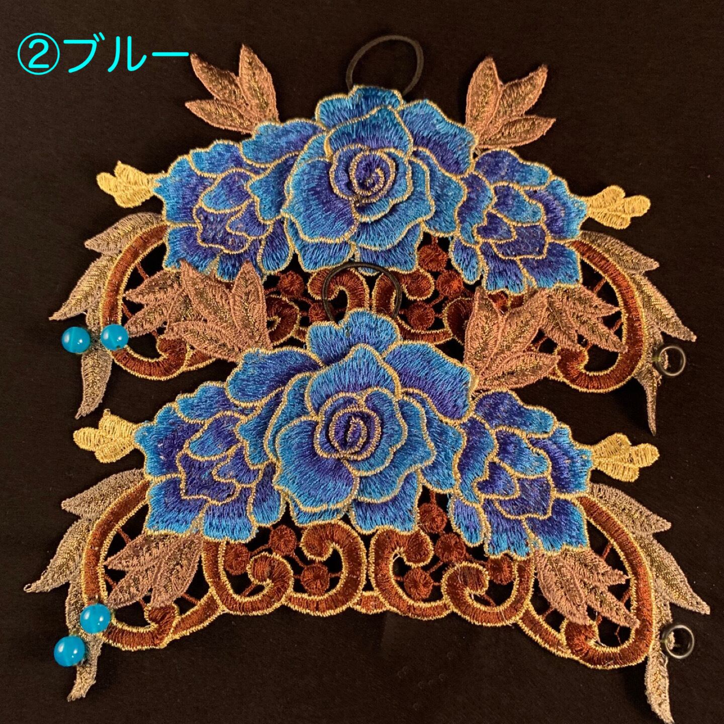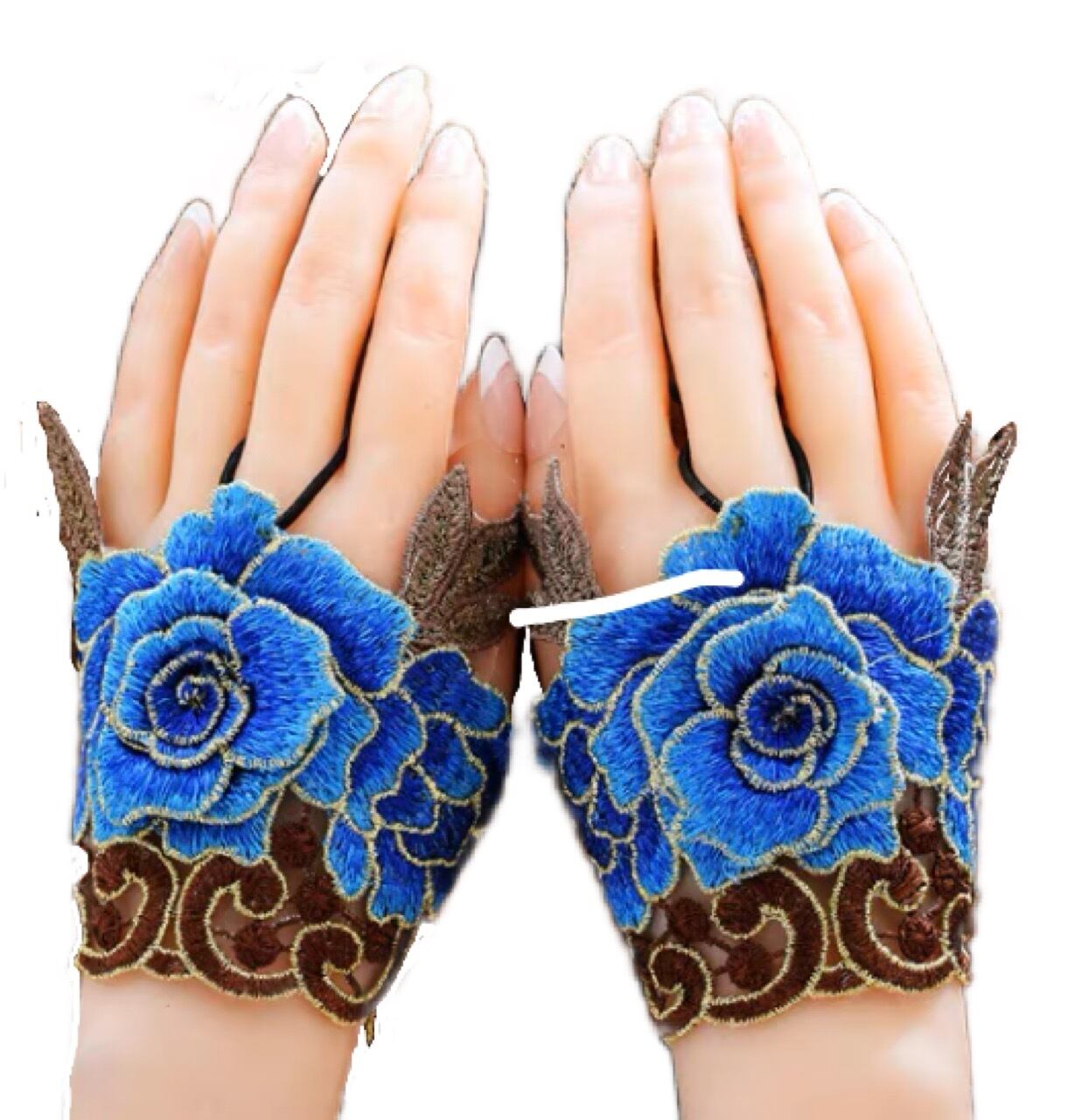 同じく中指にゴムをかけて手首の部分を2個のターコイズブルーのビーズが縫い付けてあります。