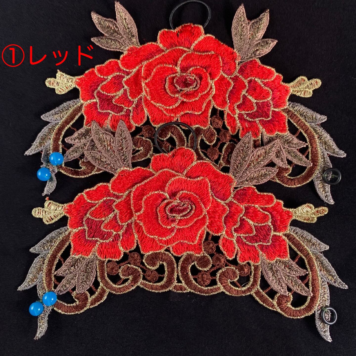 1つは飾りでもう1つは手首を止める為のもので、それを受ける黒色の丸い素材はゴムです。