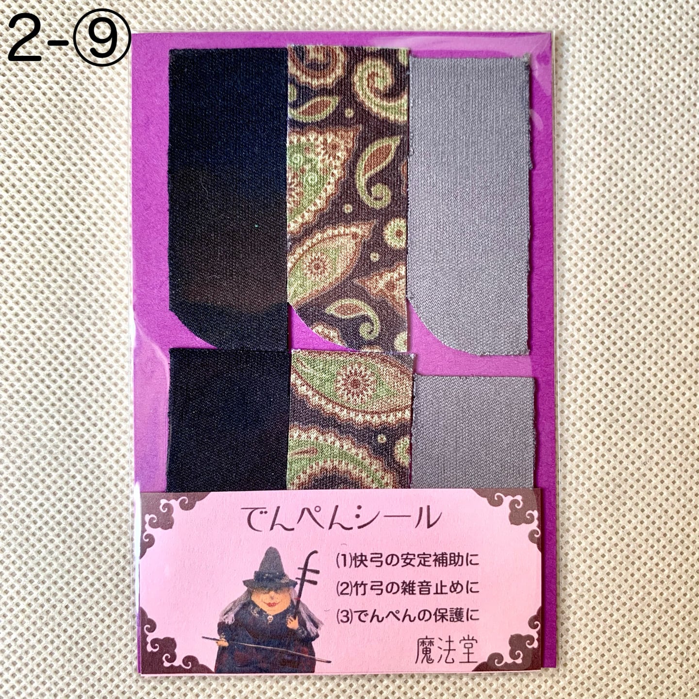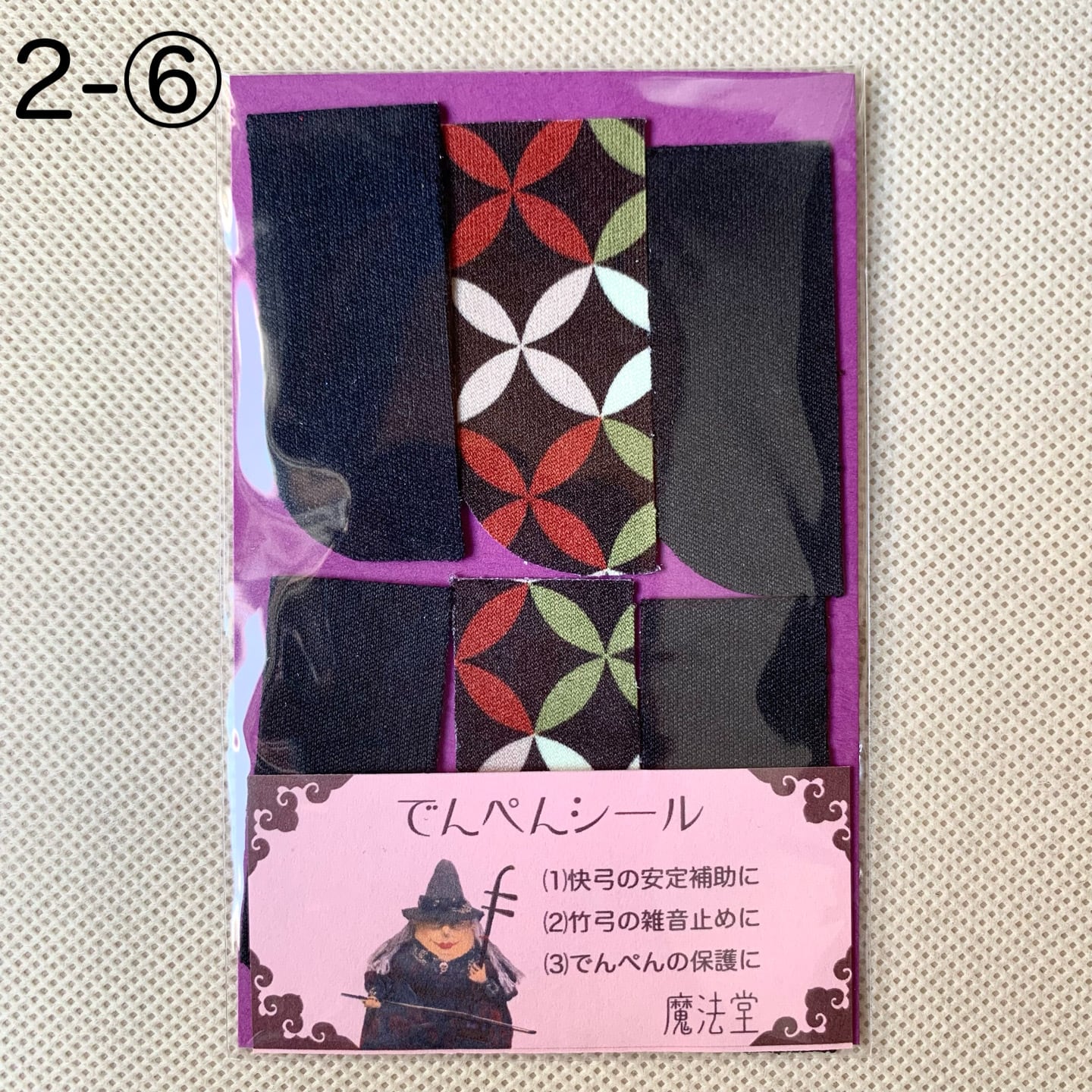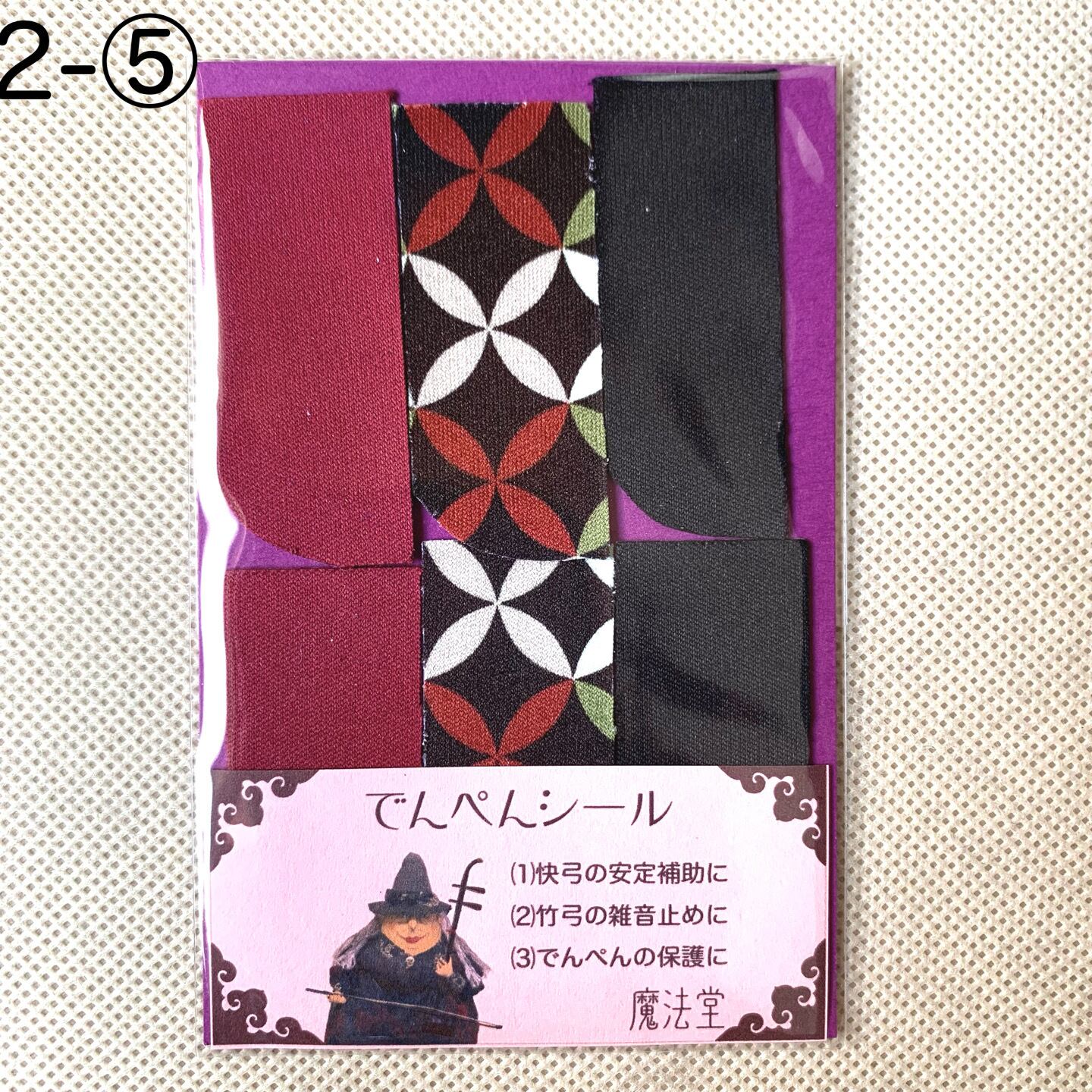 本来はデンペンのすり減りを防ぐためのシールですが、弓竹がデンペンに当たった際に出るカチカチとした雑音止めの効果に加え、慢弓・特に快弓の演奏が安定しやすくなります。