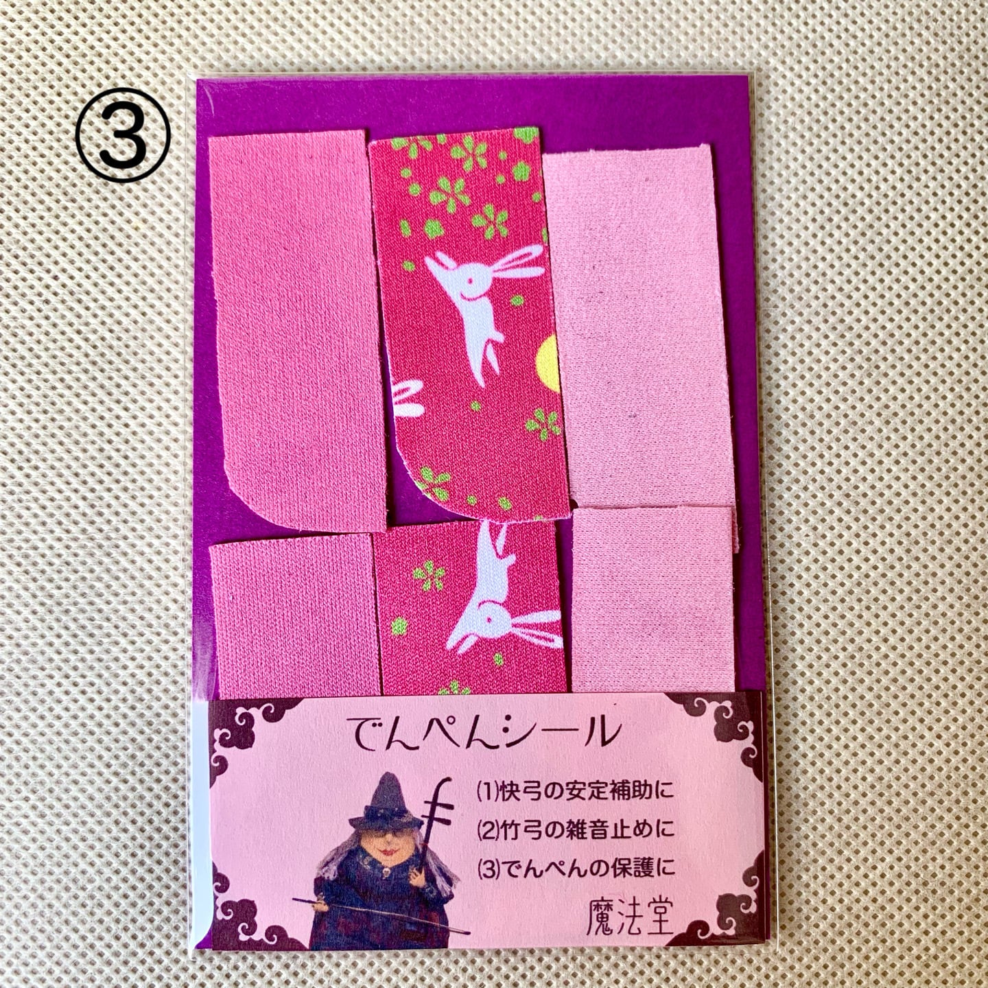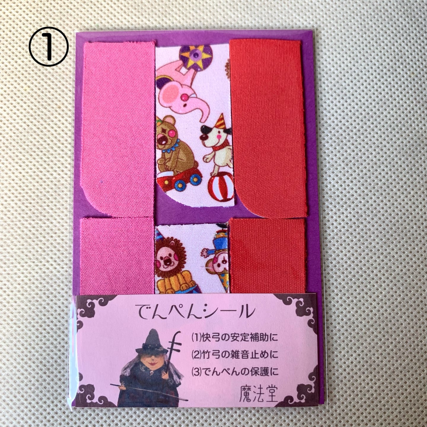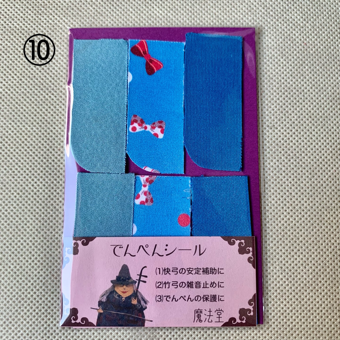 本来はデンペンのすり減りを防ぐためのシールですが、弓竹がデンペンに当たった際に出るカチカチとした雑音止めの効果に加え、慢弓・特に快弓の演奏が安定しやすくなります。